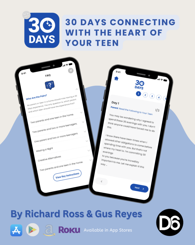 Ready to bring your family closer together? Connect with your teen for 10 minutes a day with the NEW 30 Days app! With daily prompts, stories, and questions, you and your teen will engage in meaningful conversation. The 30 Days app gives you the opportunity to be present with your teenager, encourage honest communication, and practice active listening.